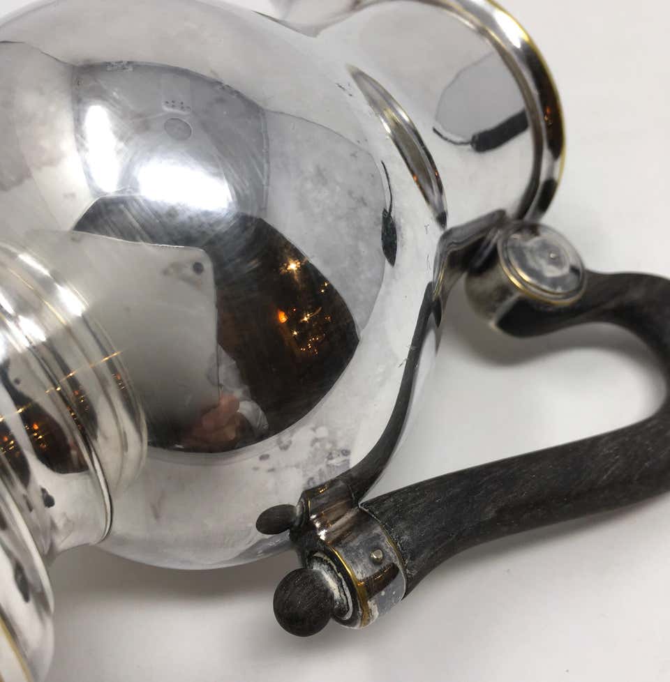 Wonderful antique silver creamer with wood handle and simple lines. Beautiful for entertaining, would look great on your table or buffet.