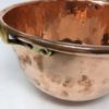 Large copper mixing bowl with brass loop handle. Found in England. This beautiful copper bowl will make a nice addition to any kitchen decor. Measures: 11″ D x 12 3/4″ W x 8 1/4″ H.