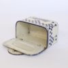 This is an antique French enamel match holder and striker made in the early 1900s. This piece can be wall-mounted or sit alone on a counter or tabletop. The lid has a strike patch on the top for lighting matches and lifts to reveal the stored matches.